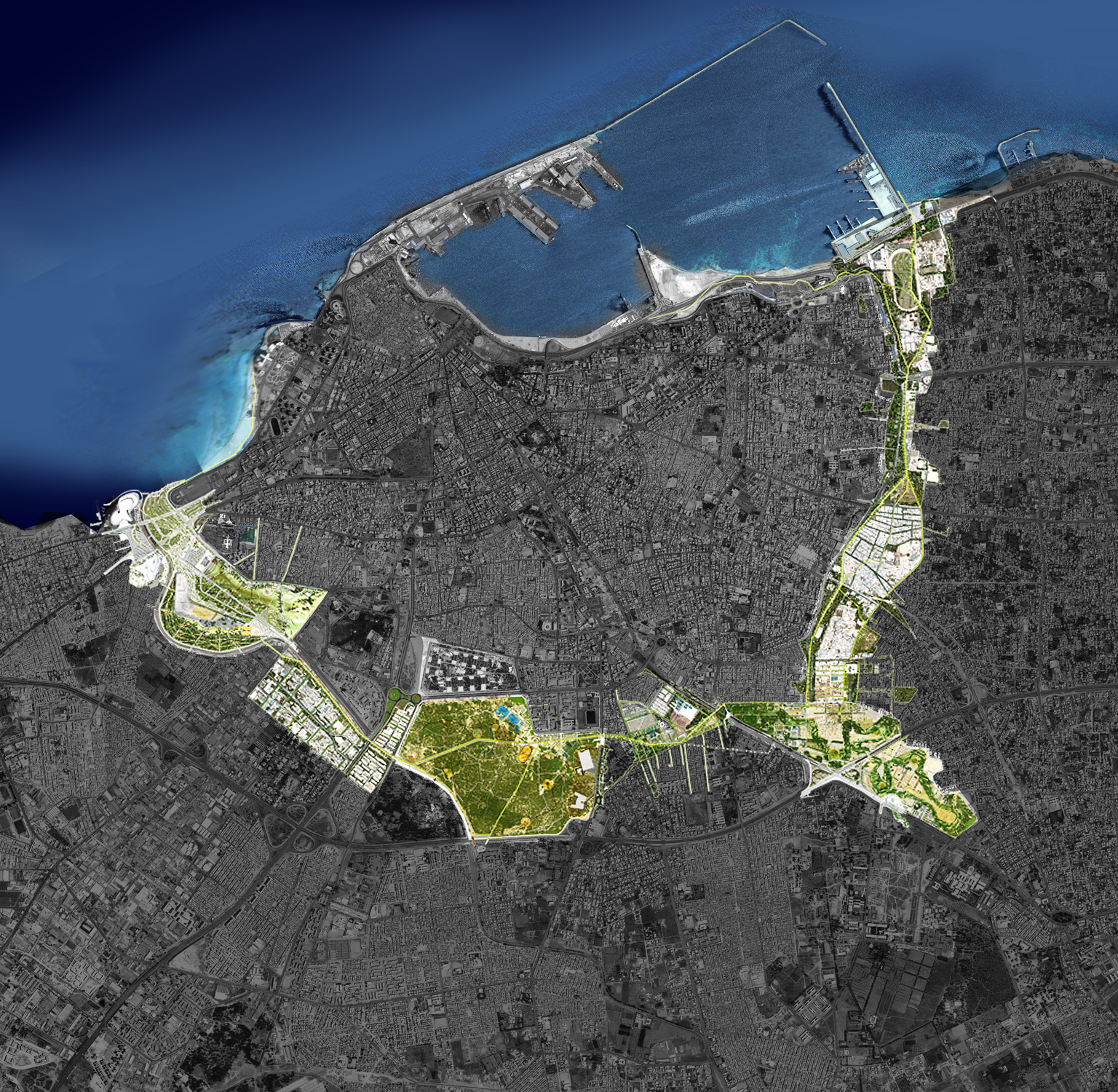 En l’espace de 45 ans, la ville de Tripoli a connu un développement tentaculaire. Spontané, rapide et dépourvu de tout encadrement urbanistique ou paysager, ce développement s’est soldé par un tissu urbain dense, manquant d’espaces verts et d’espaces publics.